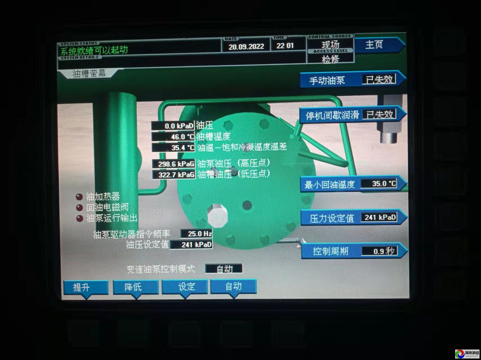 更換驅動板后讓電,控制屏顯示系統就緒可以起動,開機機組運行正常。