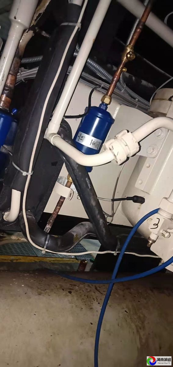 河南鄭州高新區(qū)麥克維爾離心機(jī)組進(jìn)水維修更換冷媒過濾器。